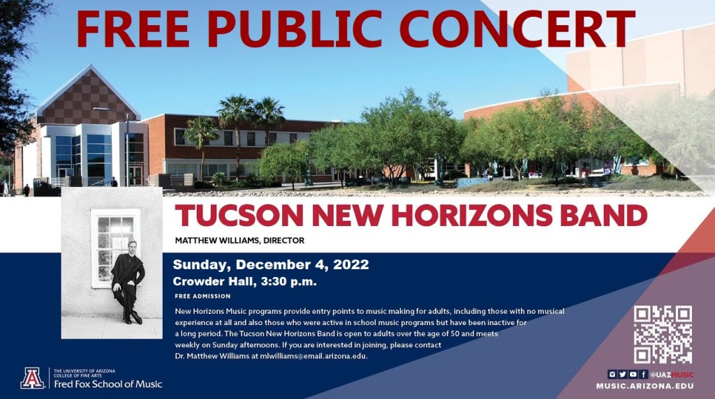 Please join us Sunday, December 4th, at 3:30 pm for our free Fall Concert in Crowder Hall on the UA campus! We will be joined by various ensembles made up of some of our members.