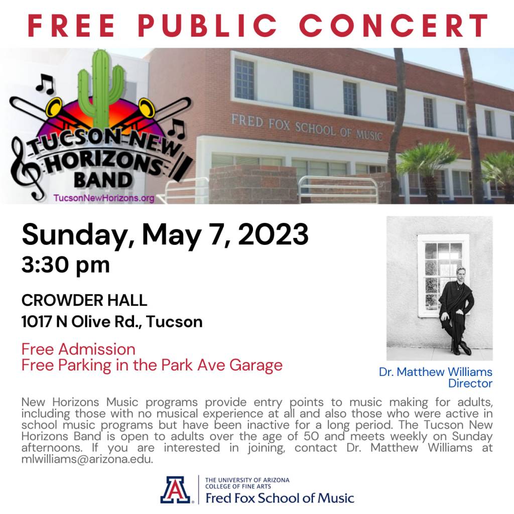 The Tucson New Horizons Band invites you to attend our Spring 2023 concert!