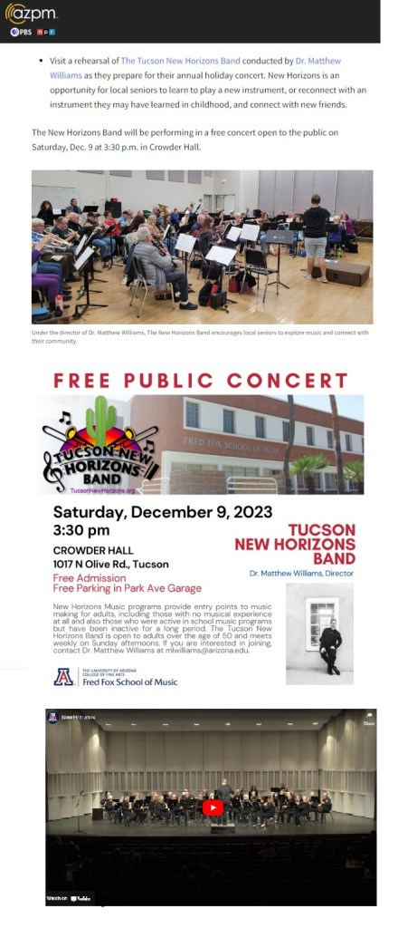 Thank you to Mark McLemore for the featuring our wonderful band on his latest episode of his AZPM program, Arizona Spotlight, on December 7, 2023.